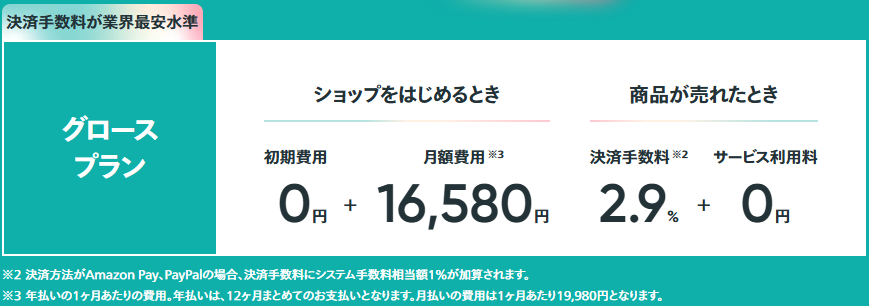 無料のスタンダードプランでも基本的な機能が利用できるため、初期投資を抑えてショップを始めることができます。